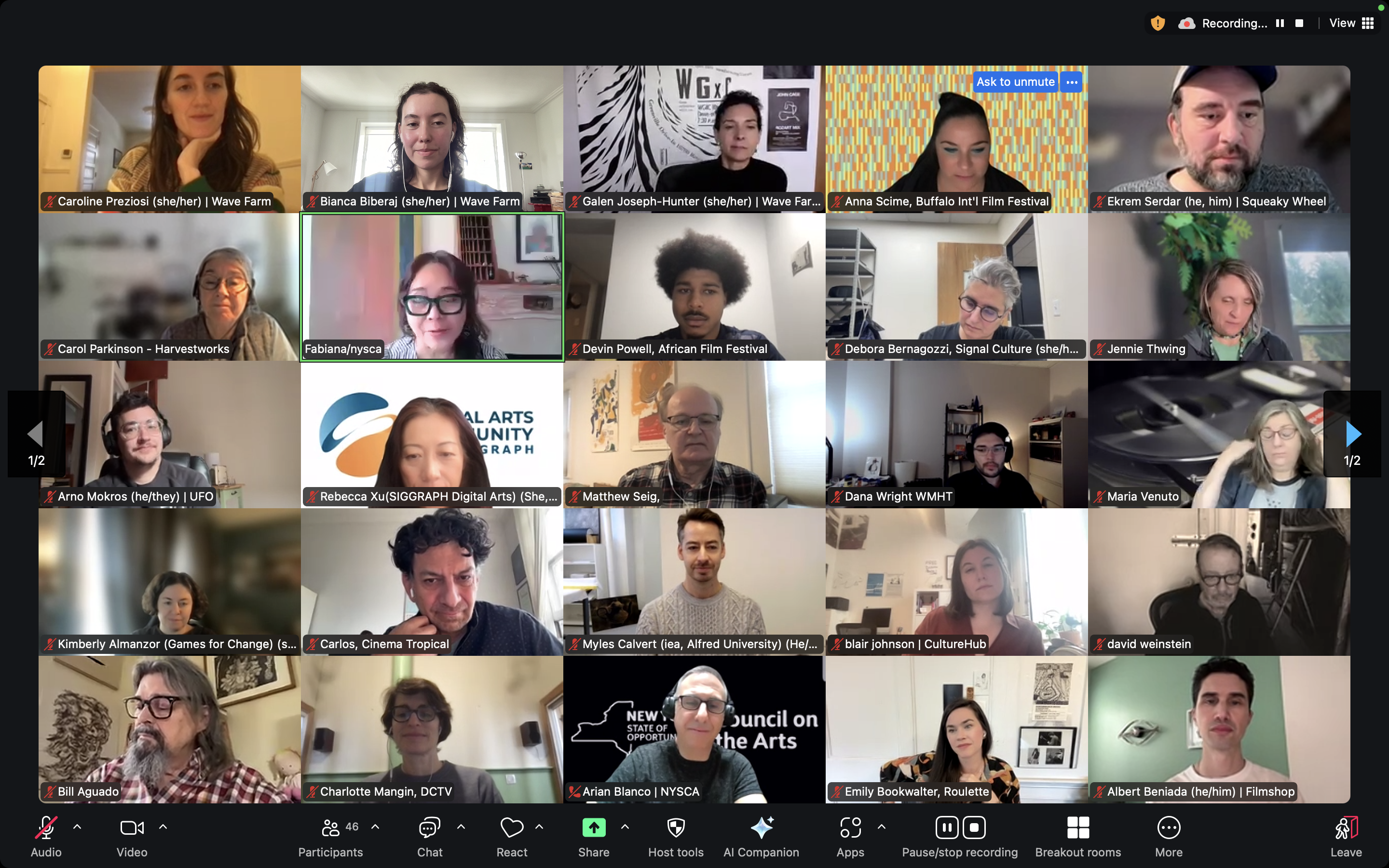 ZoomHosts NYSCA and Wave Farm shared messages to the field, updated attendees on new directions, welcomed a special guest: Jax Deluca, Media Arts Director, NEA, and the group went "Round the Room" for organizational updates!